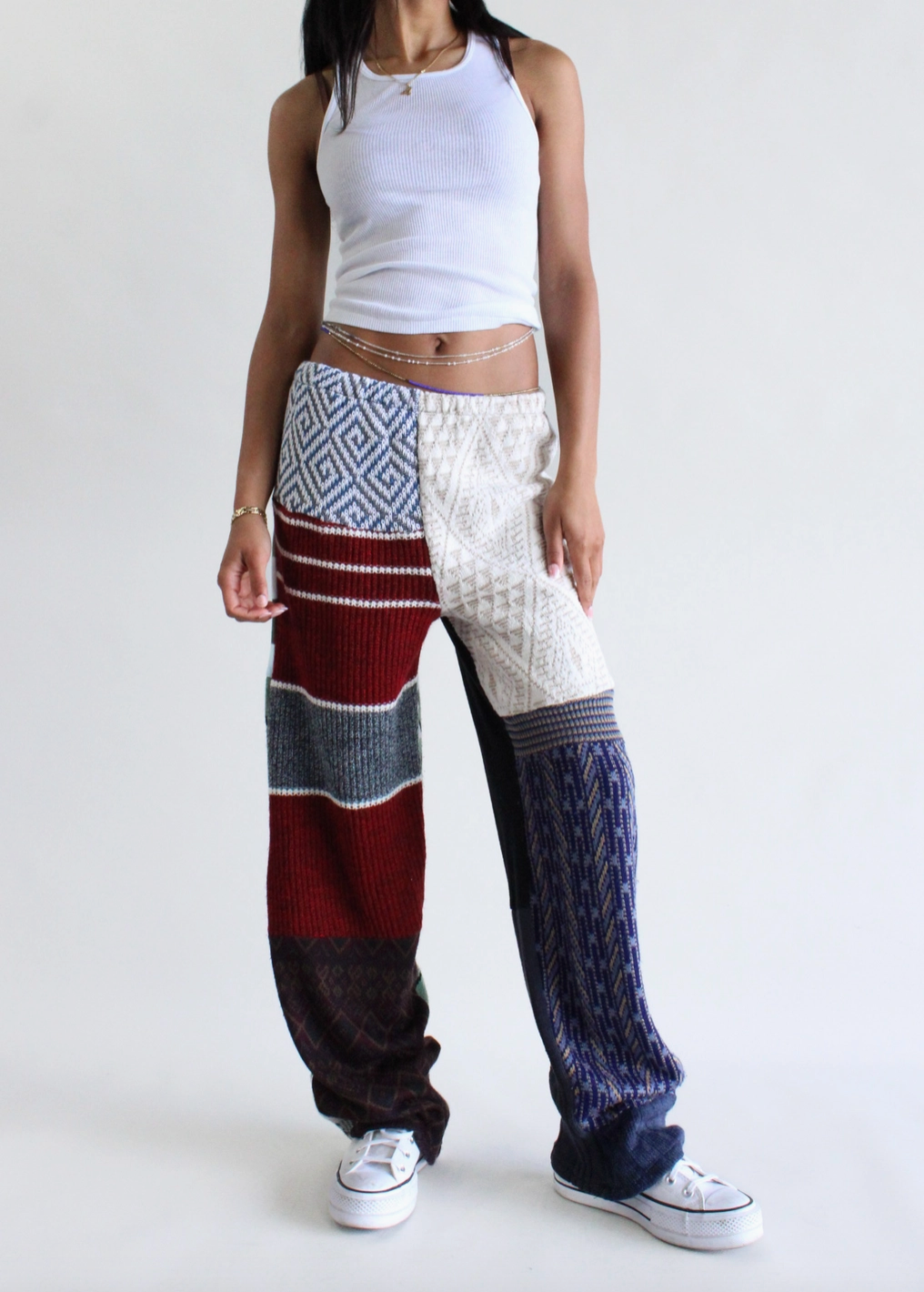Wide-leg tweed trousers with a bold checkered pattern in earthy tones, accented by gold button details. A timeless piece for chic and sophisticated styling.